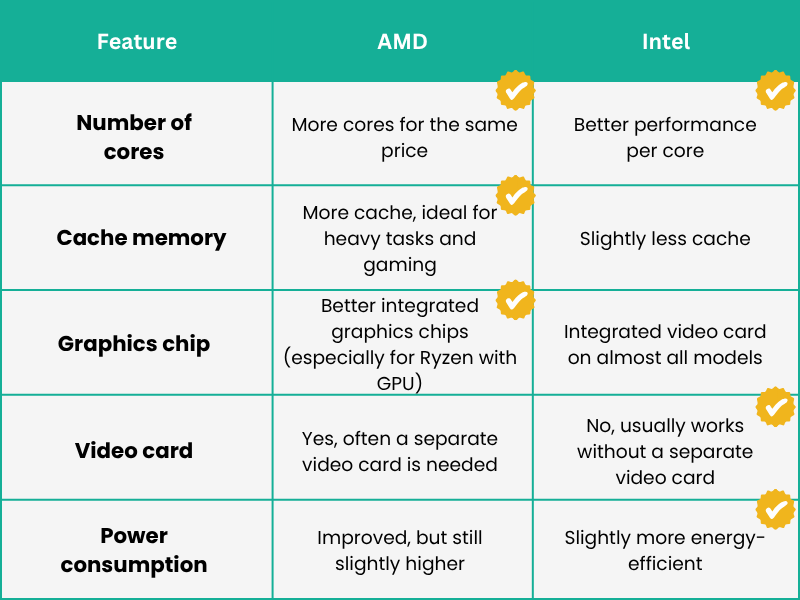 Still unsure whether to choose AMD or Intel? Below is a clear overview of the main pros and cons of both brands in a single table: